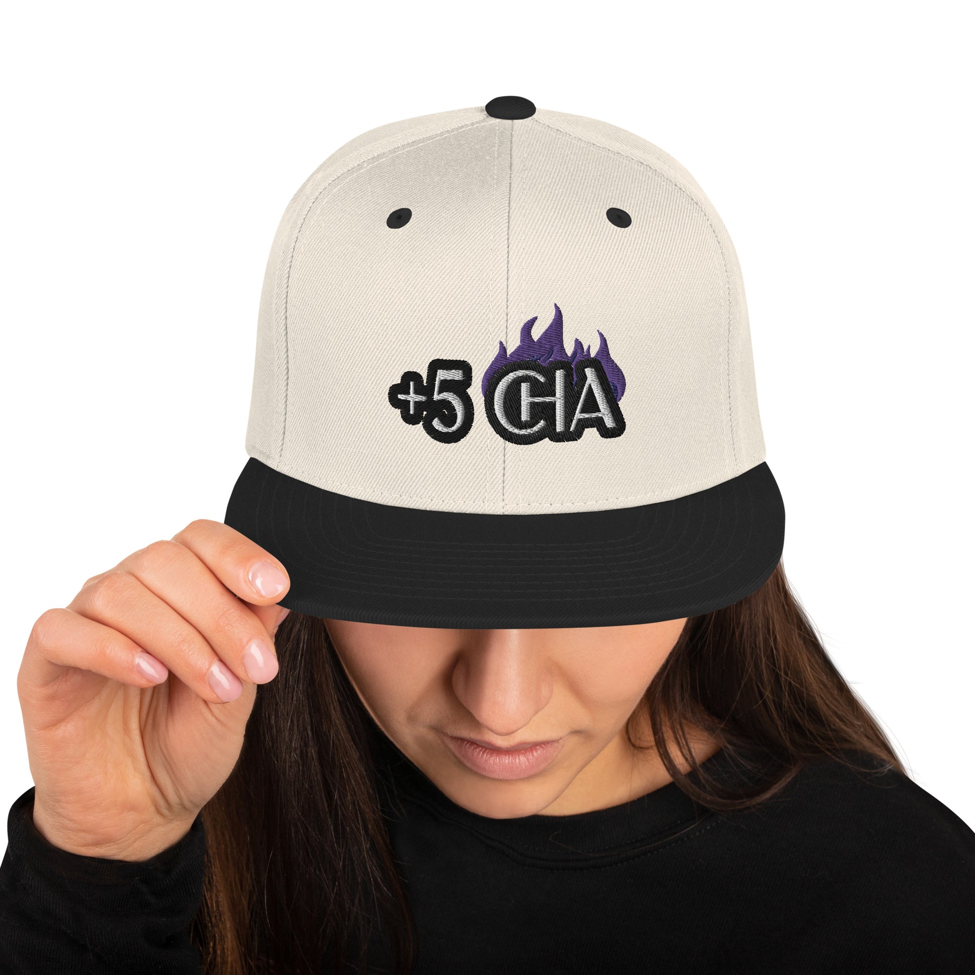 Elevate your style and boost your charisma with our "+5 CHA" Snapback Hat. This structured, high-profile hat combines a classic fit, flat brim, and full buckram construction for a bold and confident look.